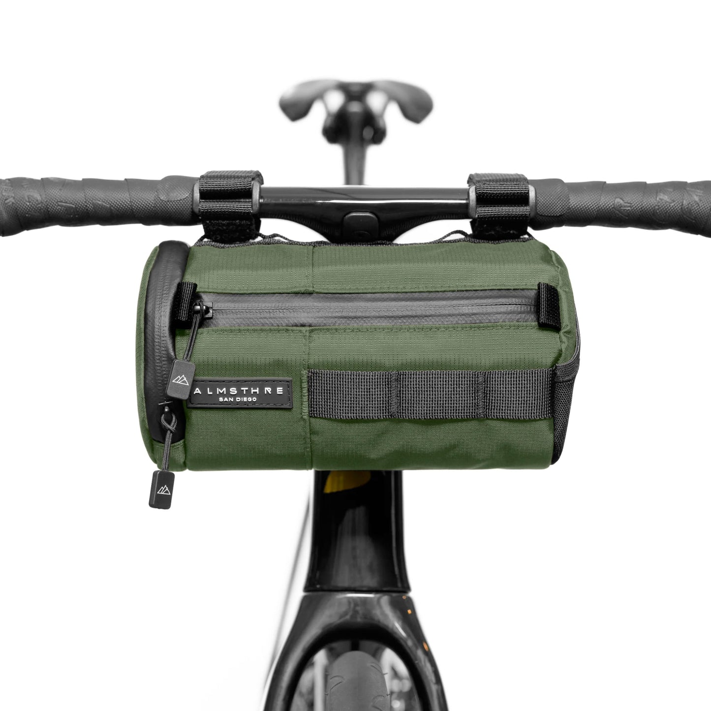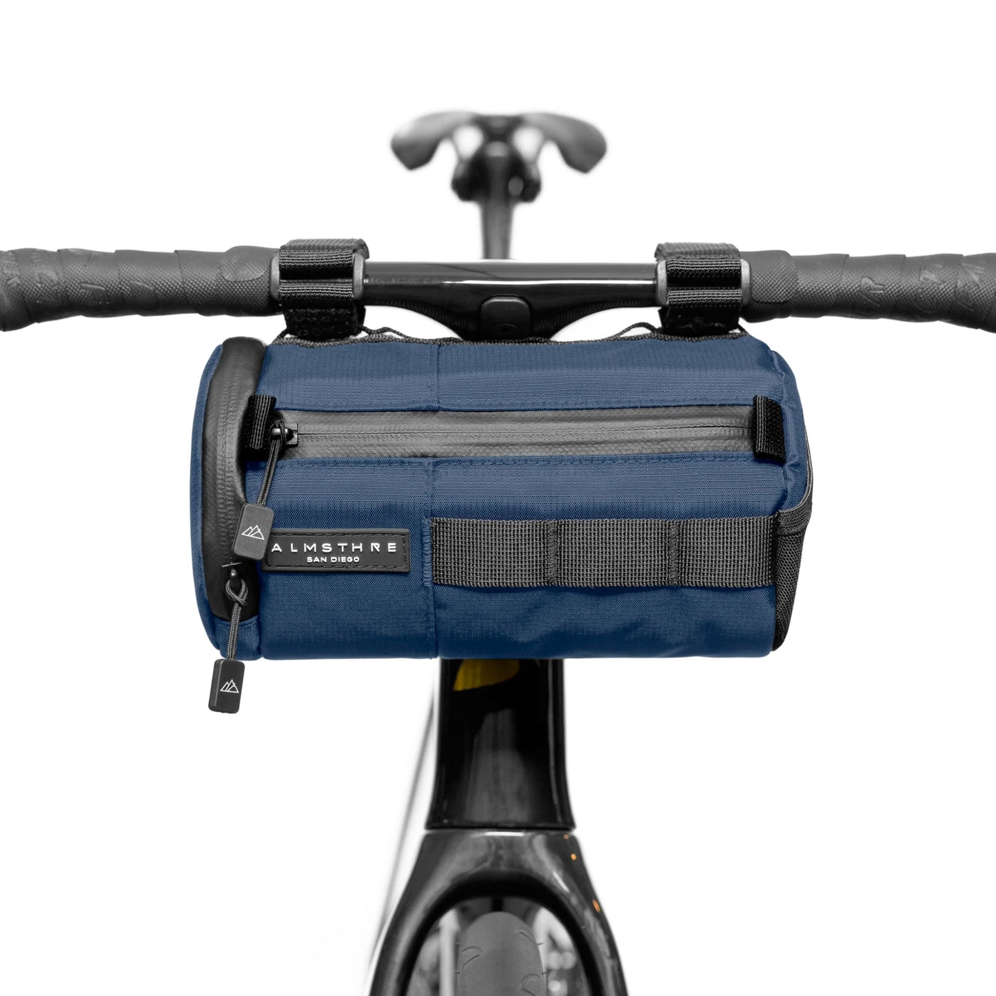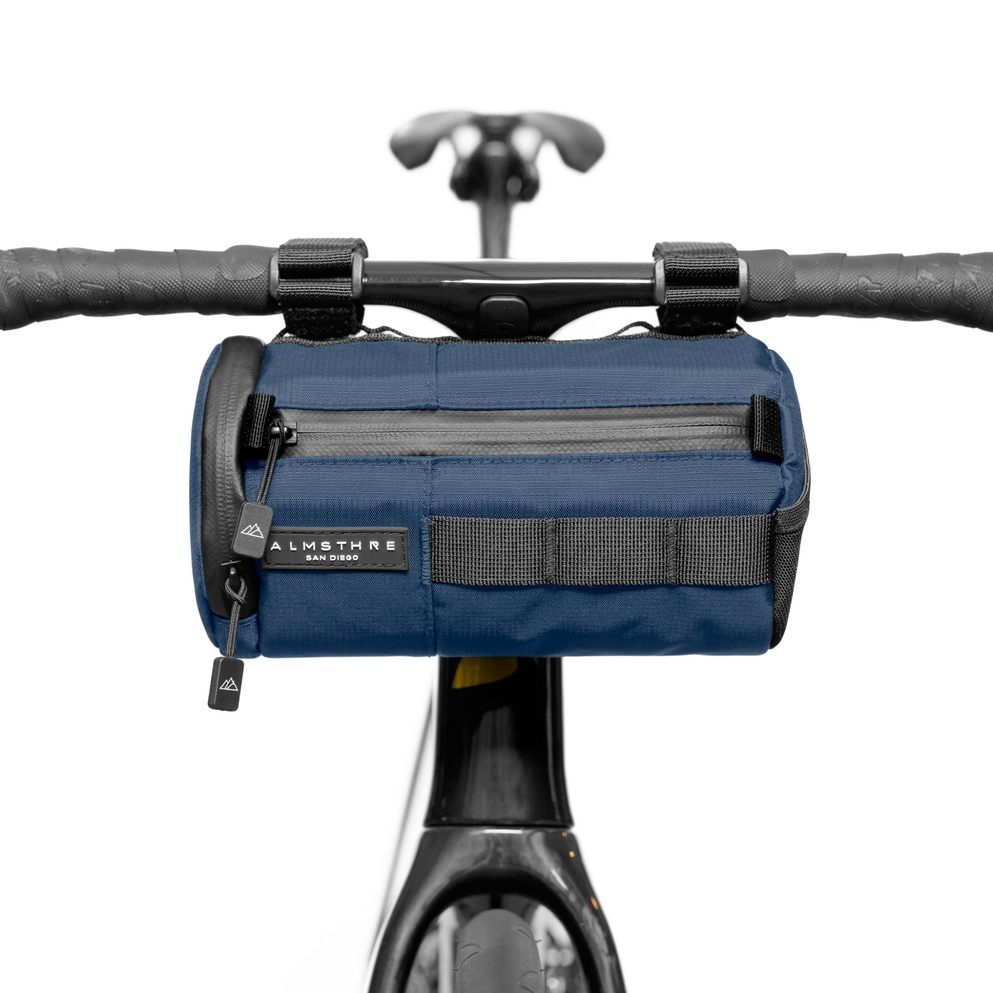 Meet the best handlebar bag ever to grace a handlebar! The Almsthre Signature Bar Bag is the perfect sized do-it-all bag for an epic day exploring the unknown or a quick trip to the cafe. With a signature hard shell design, the bag will retain its shape regardless of what's inside. Bag features quick access side zipper and mesh pockets, water resistant materials, and internal mesh organizer pocket.