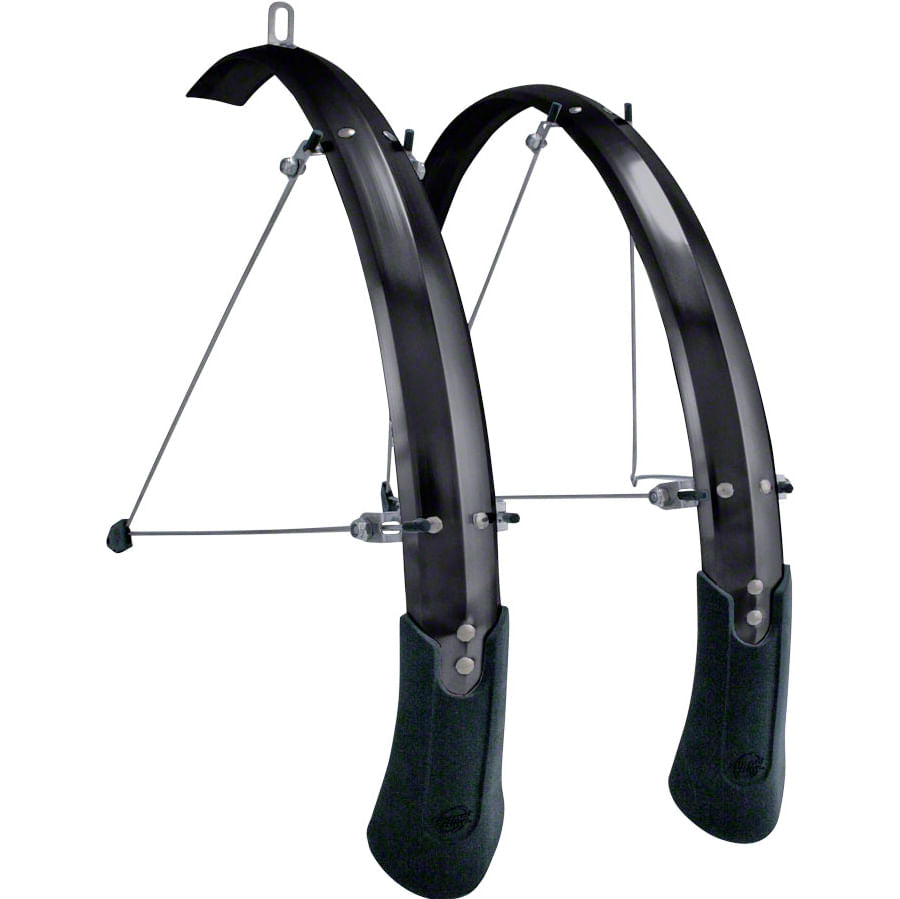 Simple, resilient and affordable, the Planet Bike Cascadia aluminum fenders by Planet Bike provide ultimate coverage and look modish doing so. Through its pre-intstalled all stainless steel hardware and double riveting, the Cascadia fender delivers a perfect combination of durability and lightweight. The 100mm mud flaps provide the perfect amount of coverage without being bulky, while the v-stays on the front and rear allows quick, easy and secure mounting.
