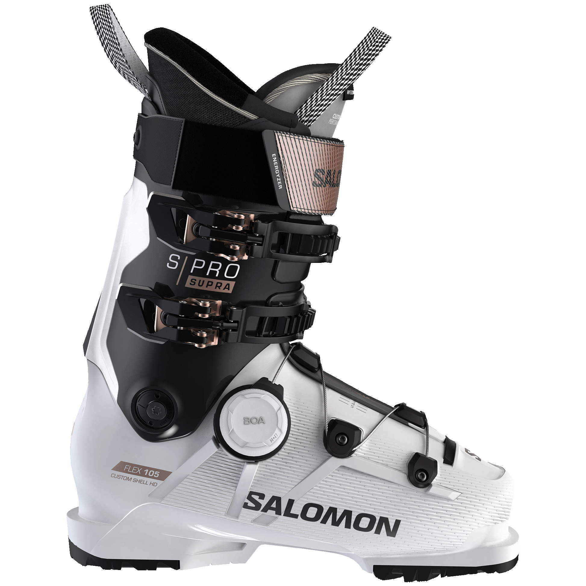 Challenging traditional boot constructions, Salomon’s Supra BOA 105 W ski boots have been designed to offer women a new standard of perfect fit. ExoWrap Construction combined with the BOA Fit System provides a micro-adjustable, precision fit and a targeted wrap around the foot that can easily be adjusted throughout the day.