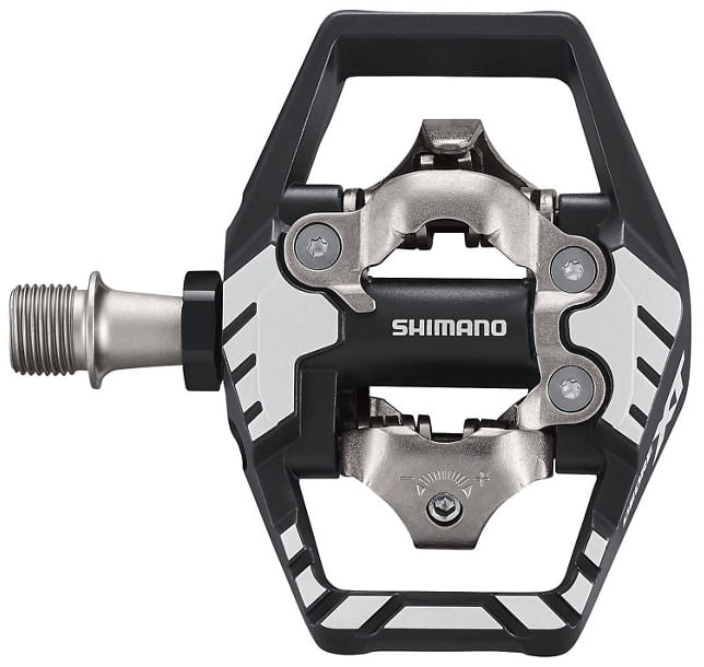 The Shimano M8120 XT Trail Pedals have wider edge-to-edge contact areas to improve the riders stability as well as the pedal-to-shoe interface which transmits power efficiently for better control. The integrated cage not only protects the binding from impacts but also makes stepping-in easier working as a guide.