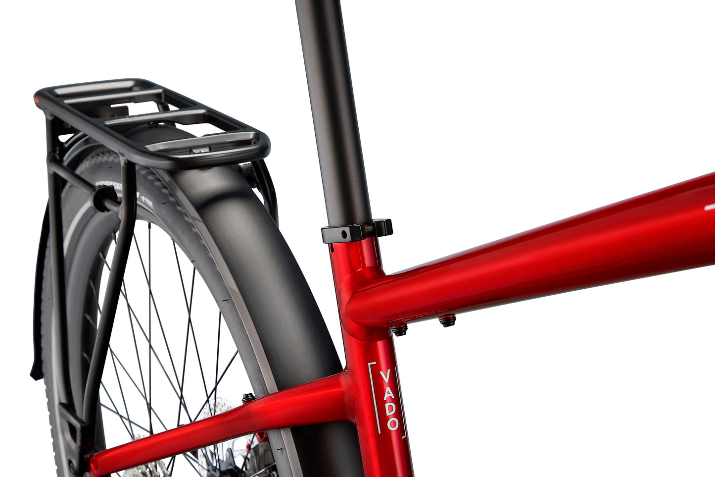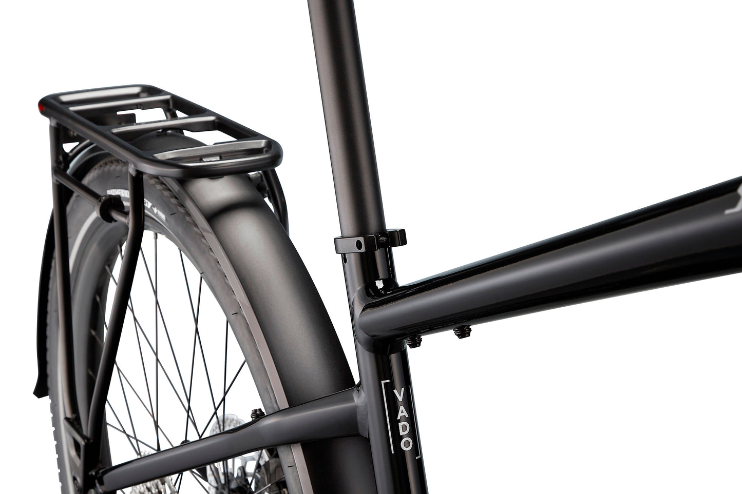 • Equipped with DRYTECH Fenders, LED front and rear lights, and 27kg capacity rear HD Rack. The rear rack is compatible with child bike seats, and the bike is also rated to pull a thru-axle trailer.