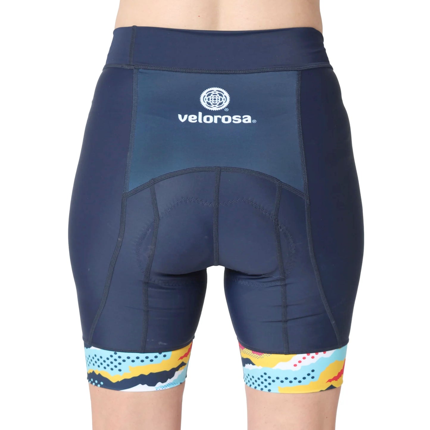 The 2024 Velorosa Active Camo Women’s Bike Shorts feature a stretchy yoga-style waistband and power leg bands. Both are designed to stay in place without cutting into your skin and provide maximum comfort. Like all Velorosa shorts, these feature an 8.5 in. inseam meant to provide maximum coverage for your inner thigh, to prevent chaffing against the saddle.